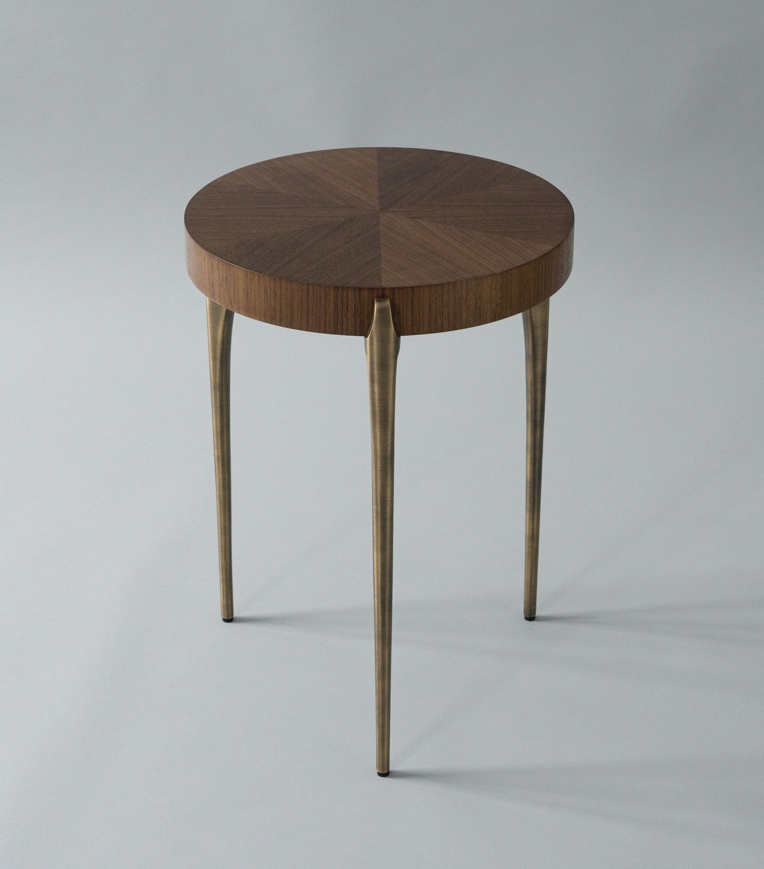 With spare, circular tops and slender, solid-metal supports, the Acantha table series is a tribute to the subtlety of craft and richness of rare materials. The side table features a medallion-like surface, balanced on a trio of legs, that showcases the painterly surface of semi-precious stone, wood, or Carta, a vegetarian alternative to parchment.